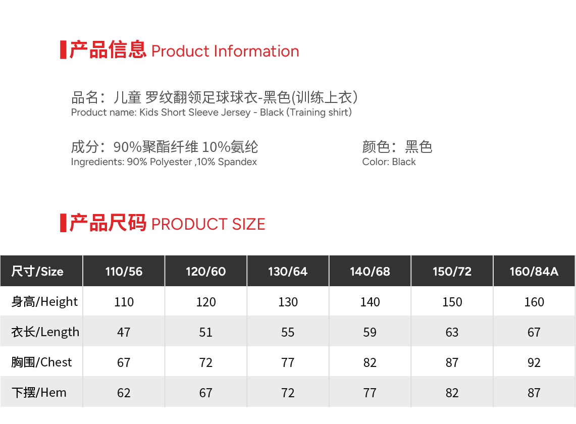 | Size | 110 or 120 or 130 or 140 or 150 or 160 |