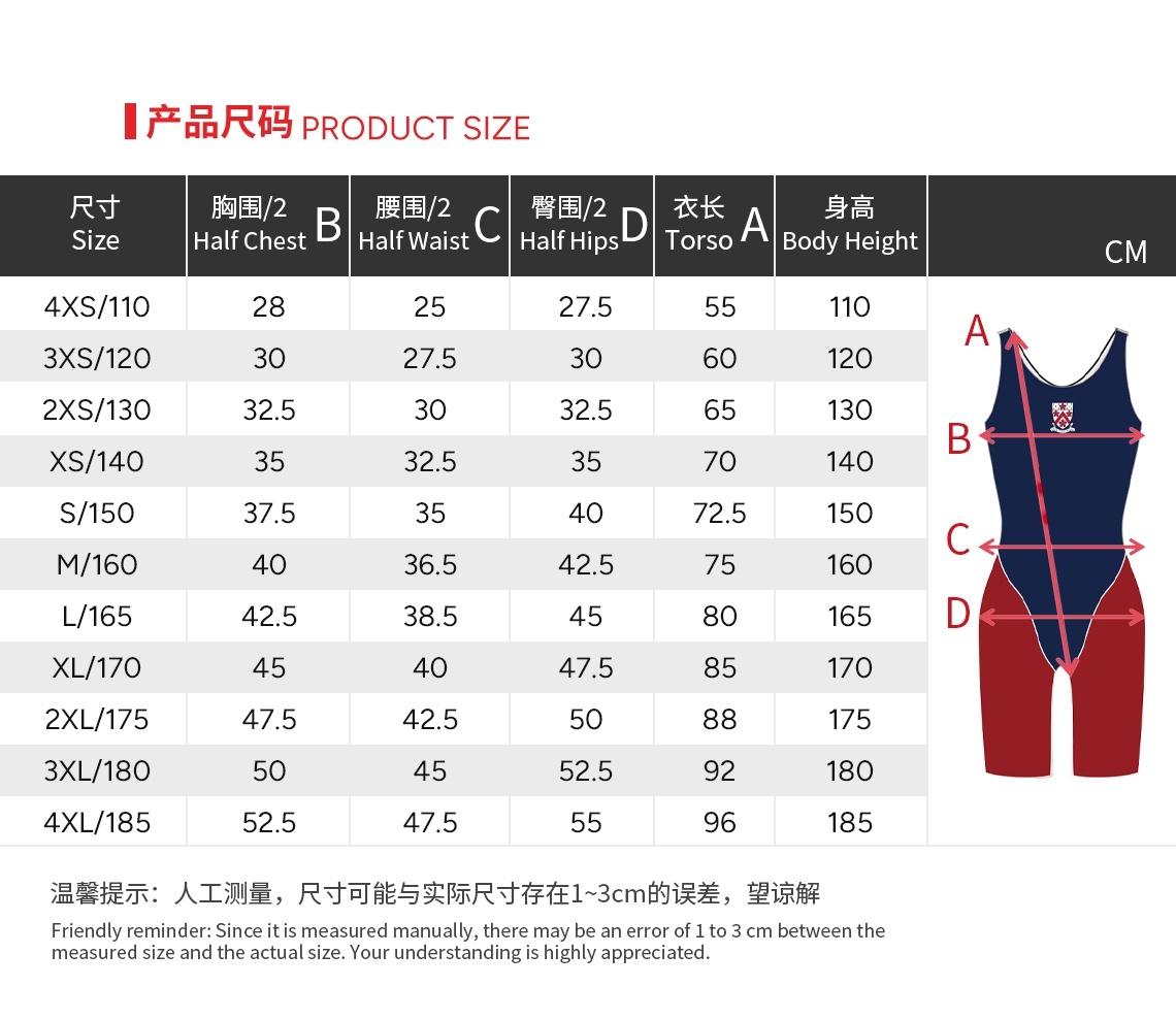 | Size | 4XS/110 or 3XS/120 or 2XS/130 or XS/140 or S/150 or M/160 or L/165 or XL/170 or 2XL/175 or 3XL/180 or 4XL/185 |