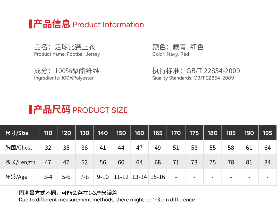 Size 110 or 120 or 130 or 140 or 150 or 160 or 165 or 170 or 175 or 180 or 185 or 190 or 195