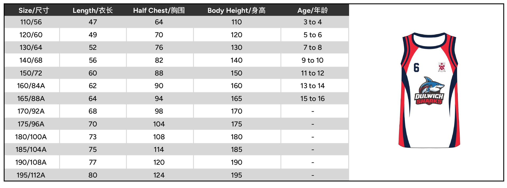| Size | 110 or 120 or 130 or 140 or 150 or 160 or 165 or 170 or 175 or 180 or 185 or 190 or 195 |