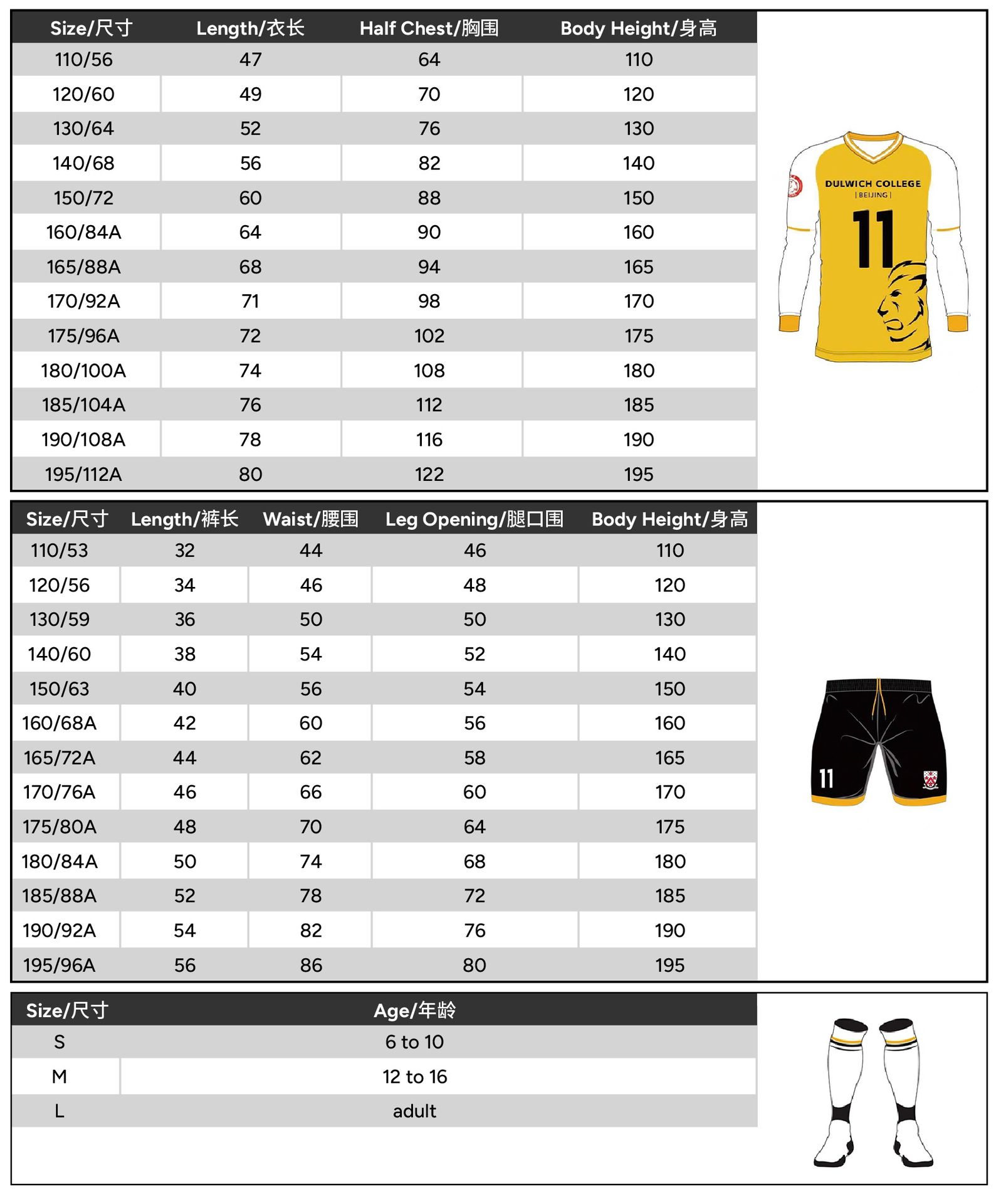 Size 110 or 120 or 130 or 140 or 150 or 160 or 165 or 170 or 175 or 180 or 185 or 190 or 195
