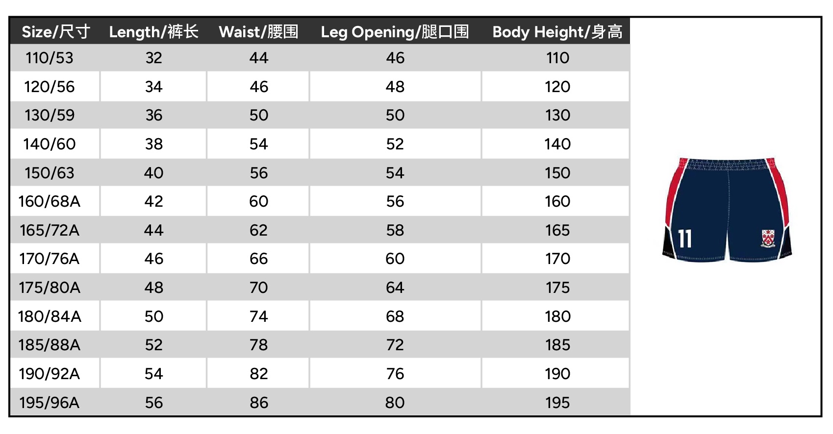 | Size | 110 or 120 or 130 or 140 or 150 or 160 or 165 or 170 or 175 or 180 or 185 or 190 or 195 |